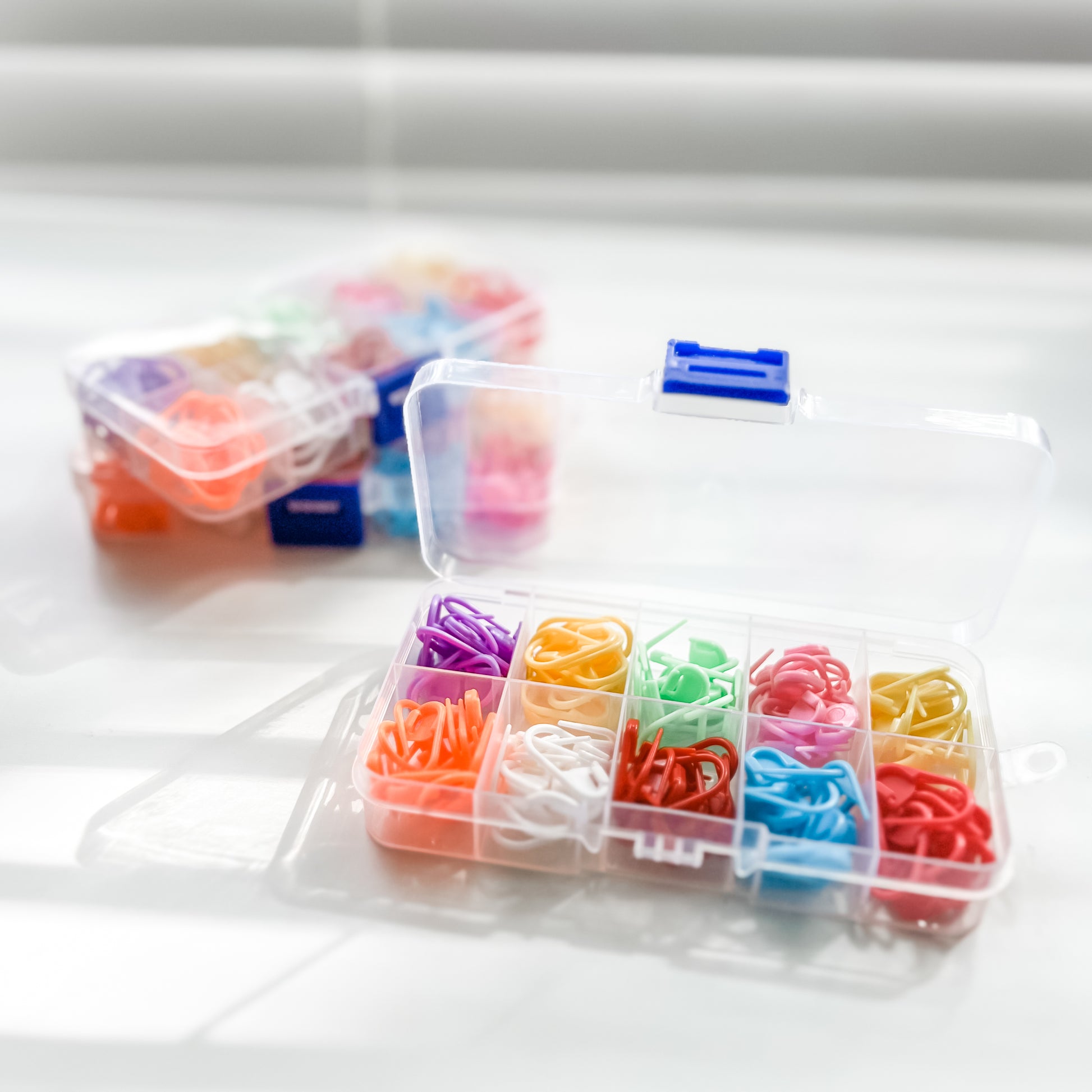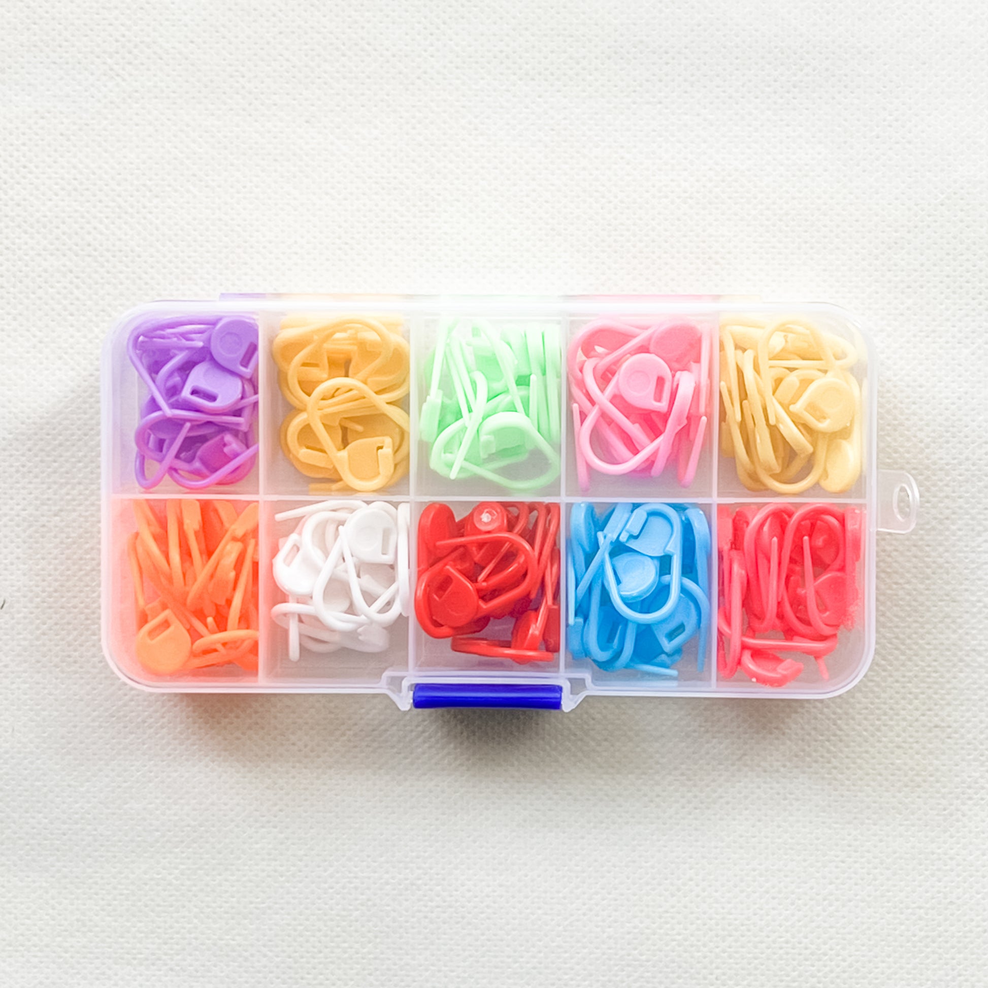 Keep track of your projects with our 120-Piece Locking Stitch Marker Pack. With 10 bright colors and a total of 120 stitch markers, you'll have plenty of options to mark your stitches, rows, or increases without missing a beat. Whether you're working on a big project or something small, these handy markers will help you keep track effortlessly.